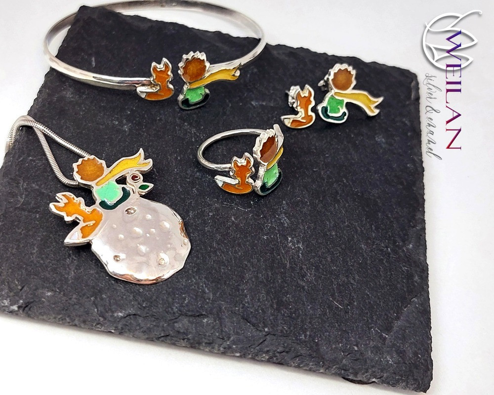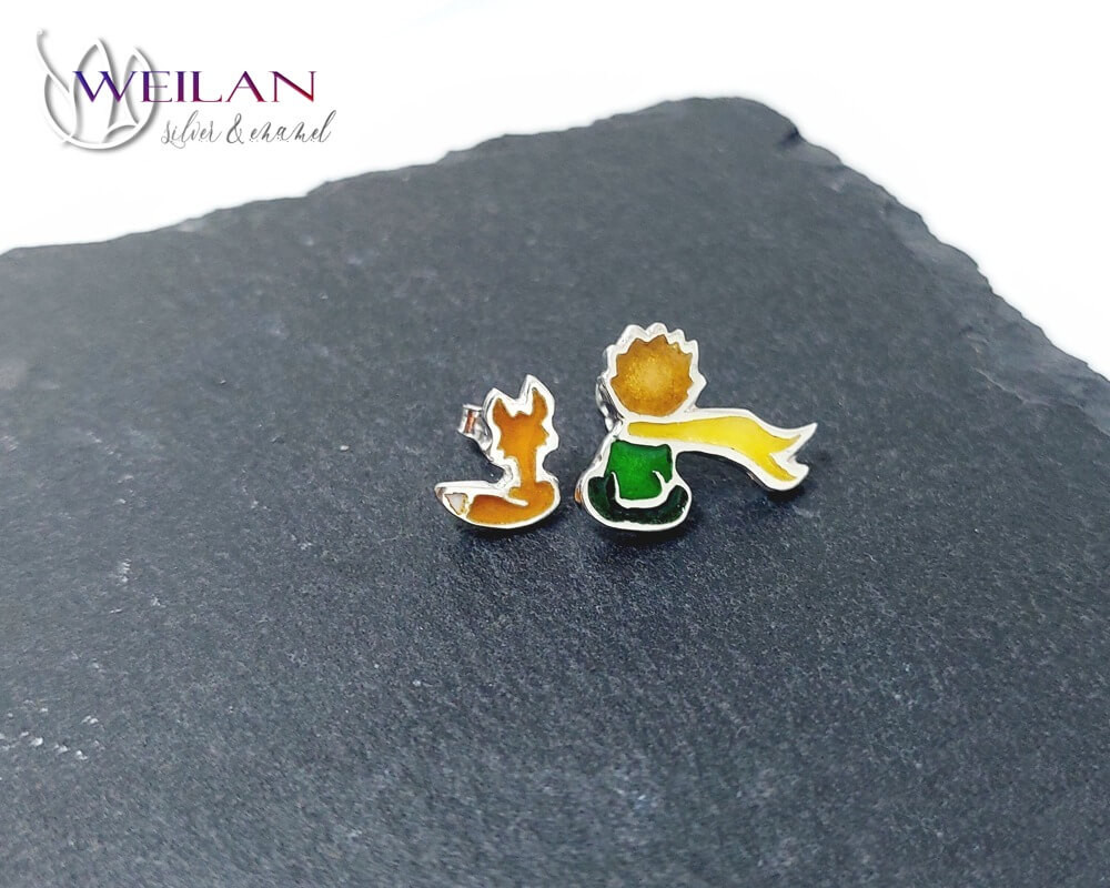 A kis herceg, aszimmetrikus ezüst tűzzománc fülbevaló