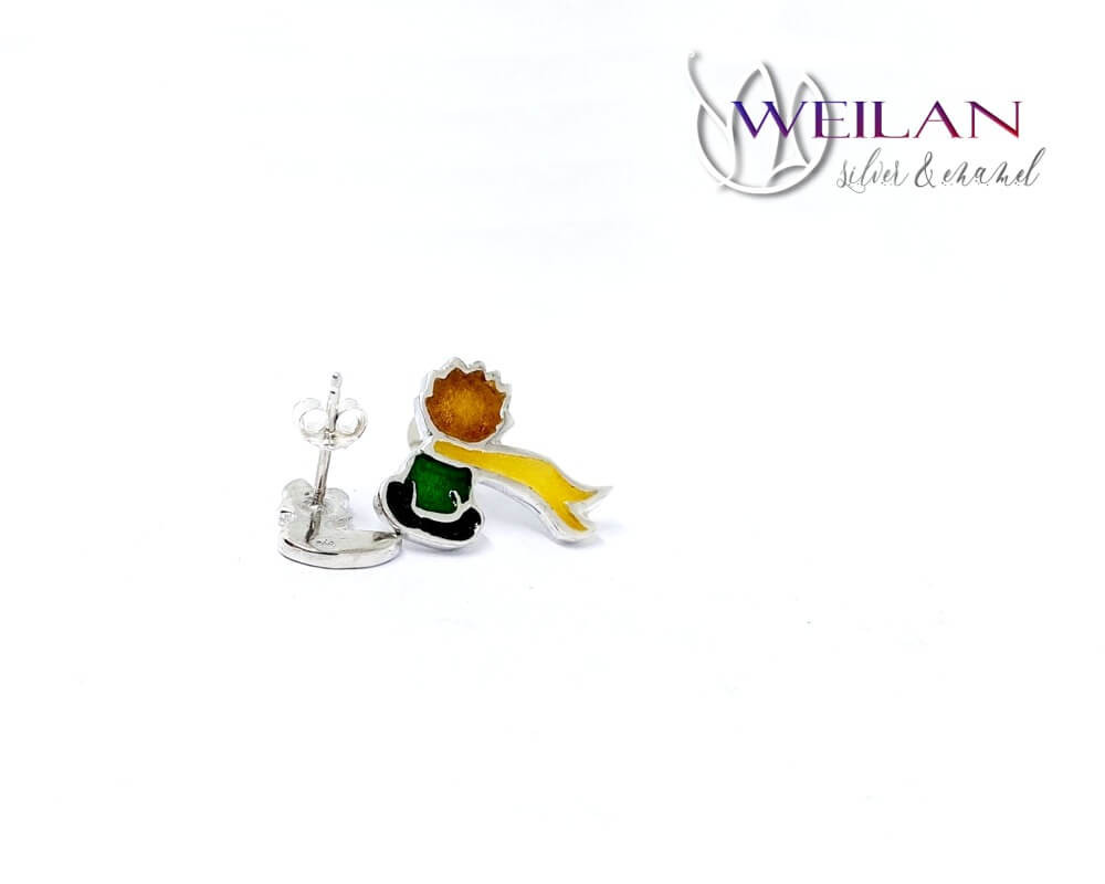A kis herceg - aszimmetrikus, ezüst tűzzománc stiftes fülbevaló (sárga sállal)