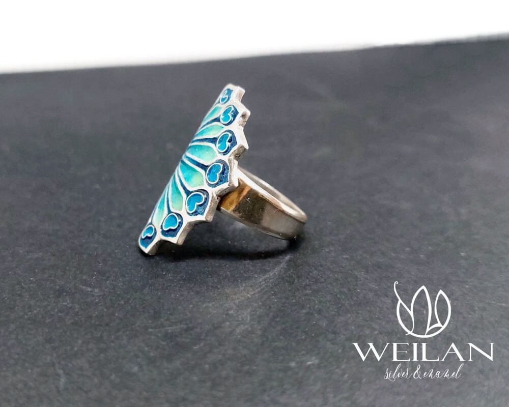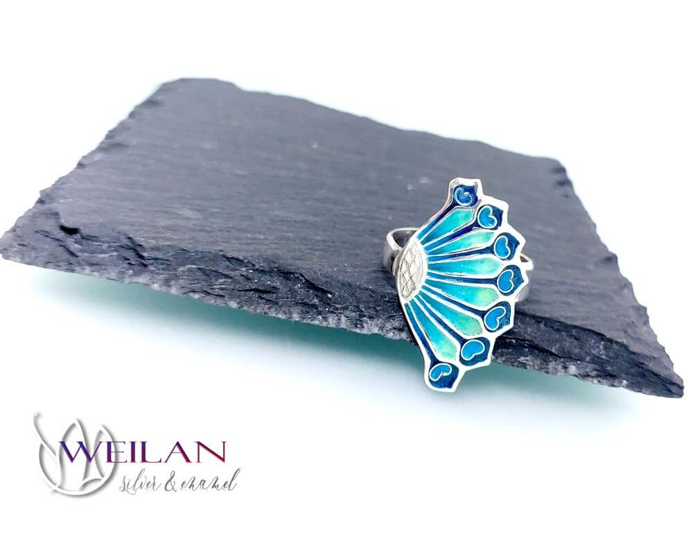 Büszkepáva - ezüst tűzzománc gyűrű 58-62 méret (türkizzöld-türkizkék)