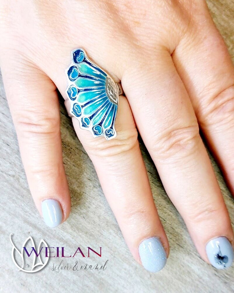 Büszke páva - ezüst tűzzománc gyűrű viselése