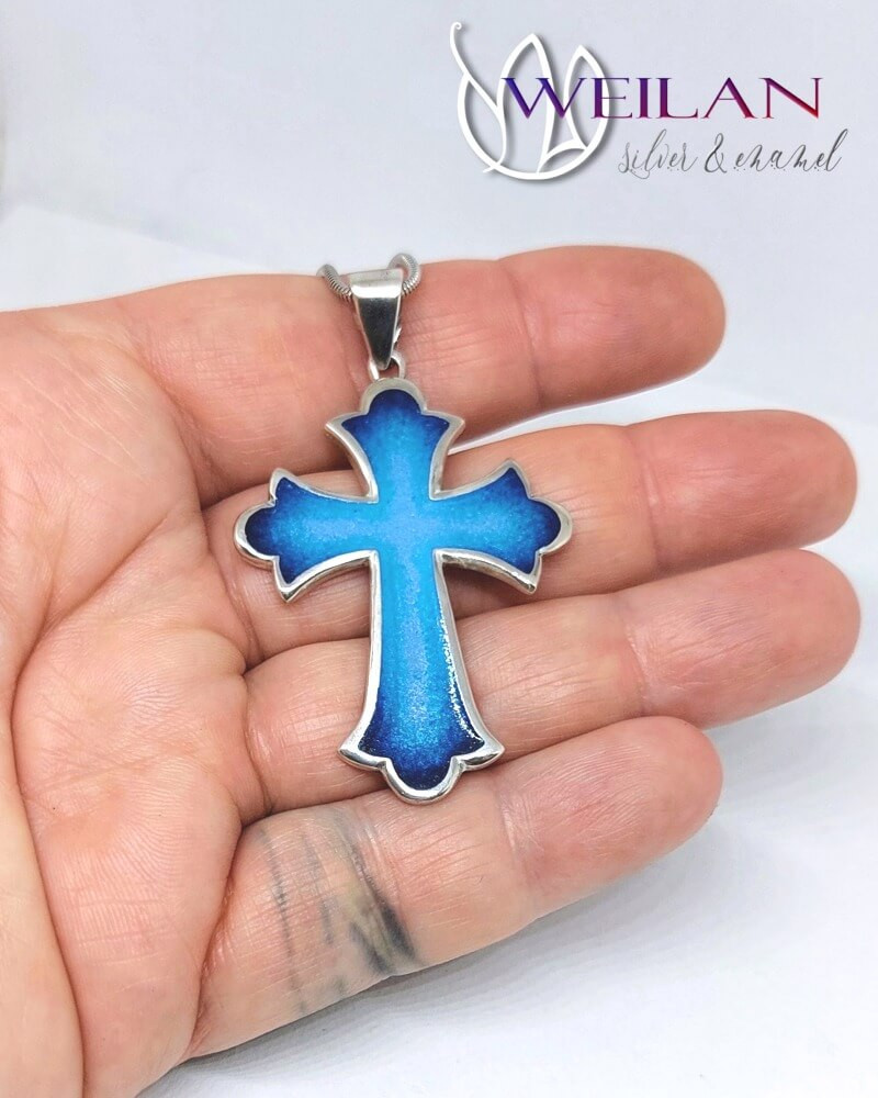 • Ez az egyedi kereszt tűzzománc ékszer bronzból is megtalálható a Weilan ékszerek kínálatában