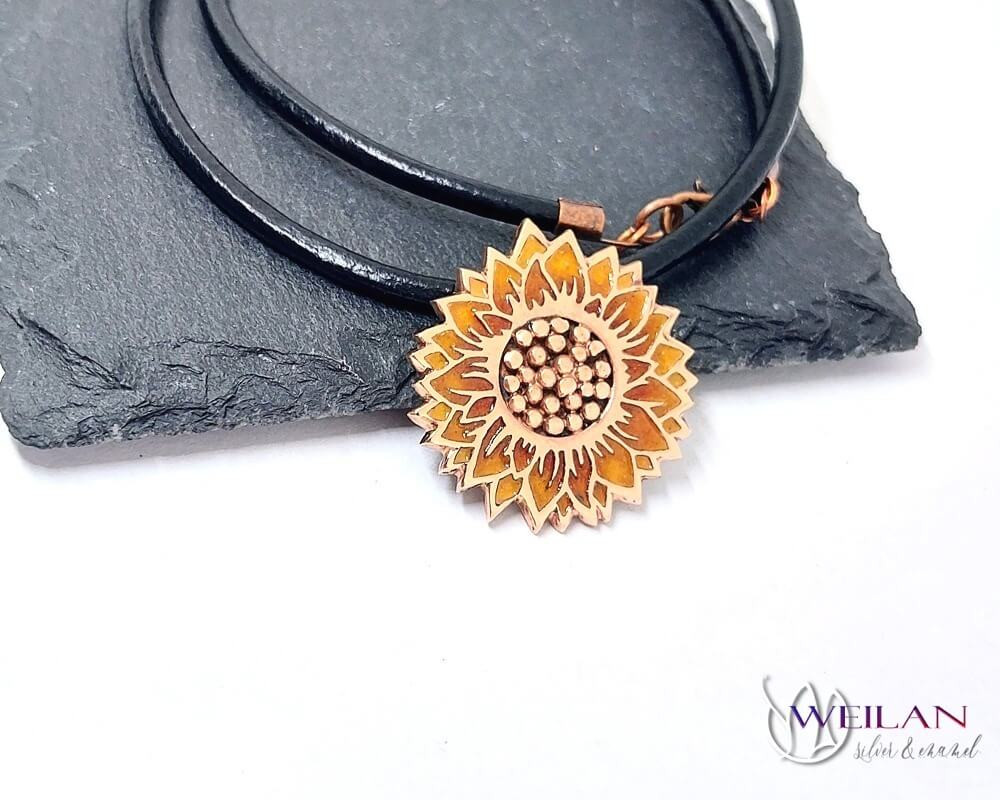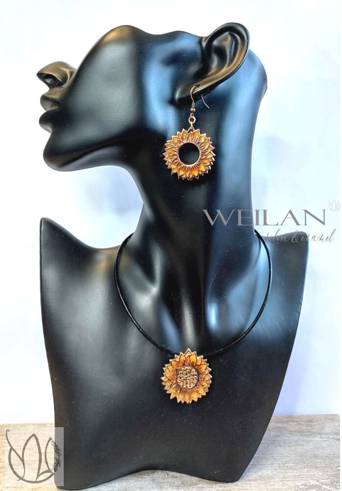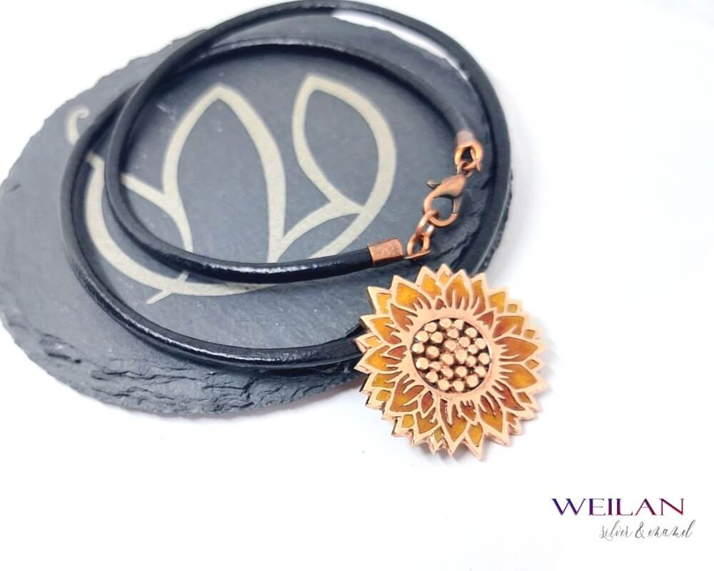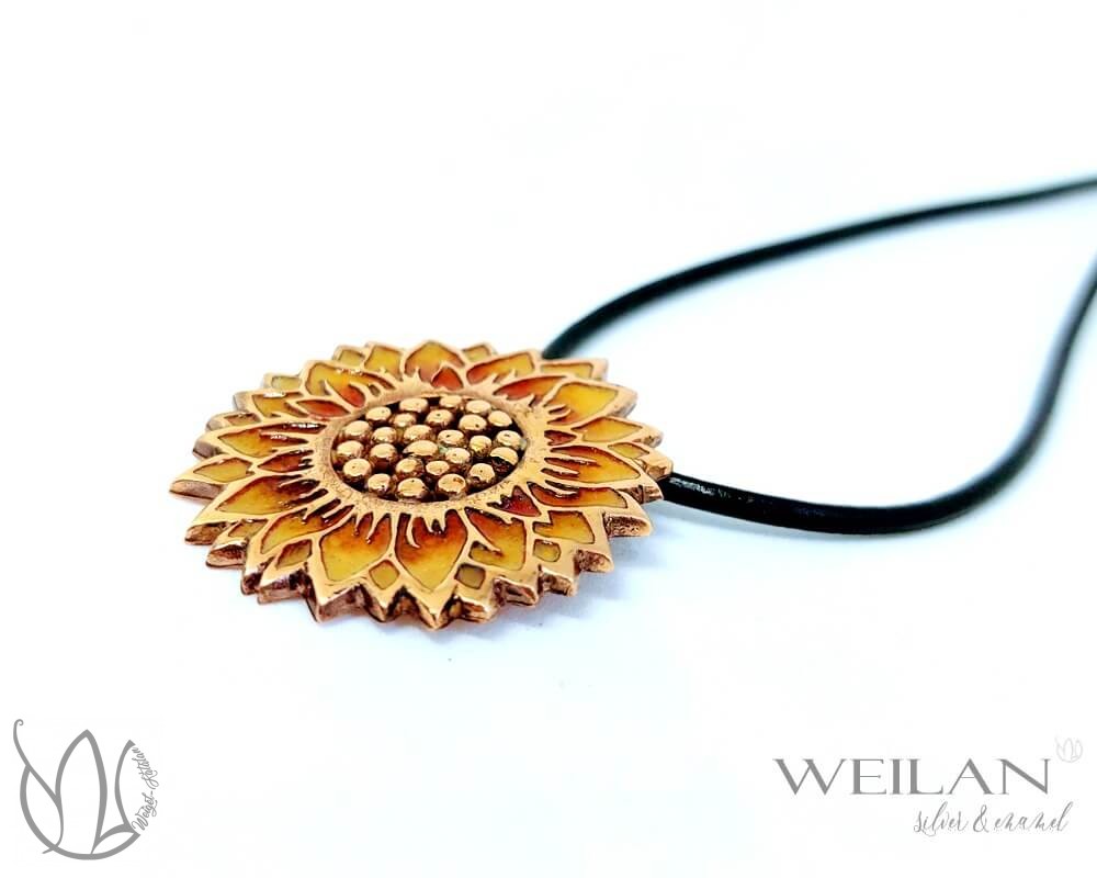 • Ez az egyedi Napraforgóvirág tűzzománc ékszer ezüstből is megtalálható a Weilan ékszerek kínálatában, továbbá hozzá illő fülbevalót, valamint áttört belső résszel (magok nélküli változatát)  is megtalálhatod a termékek között