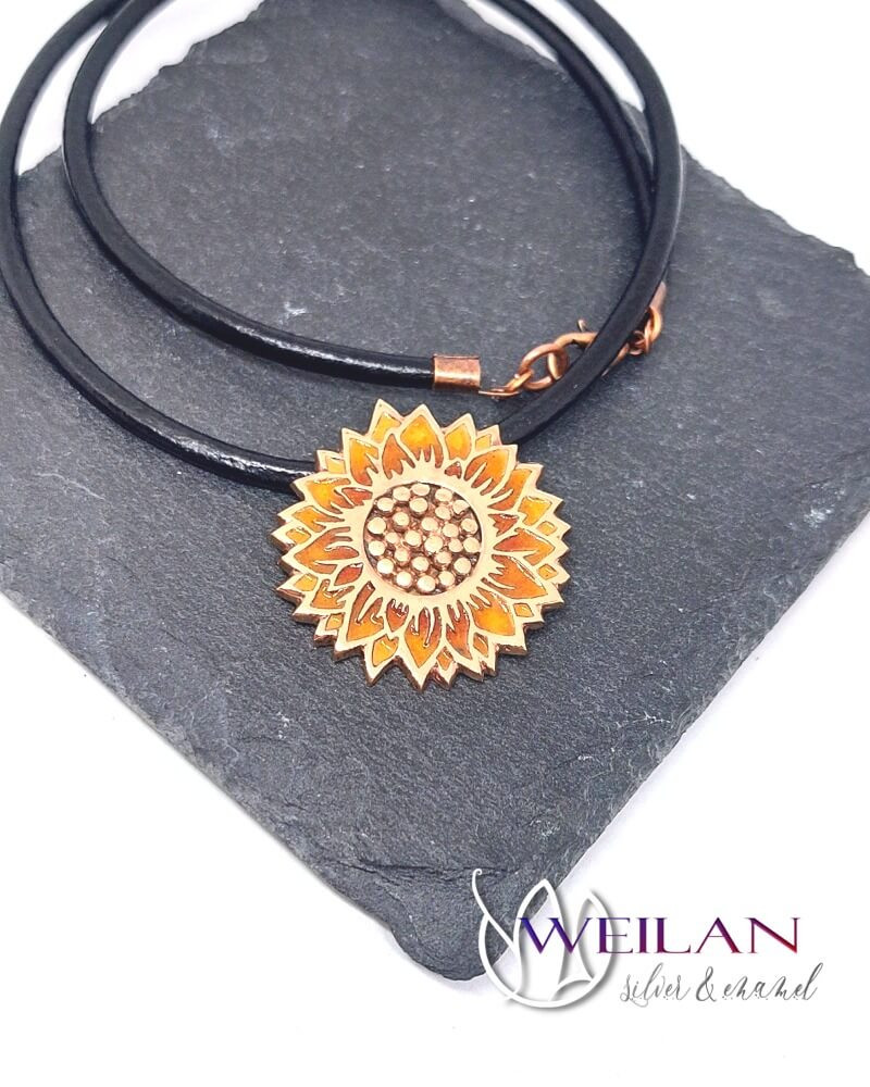 Napraforgóvirág - magokkal, bronz tűzzománc medál