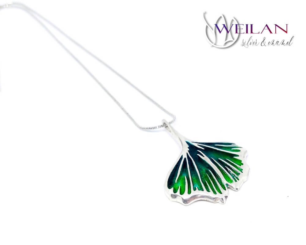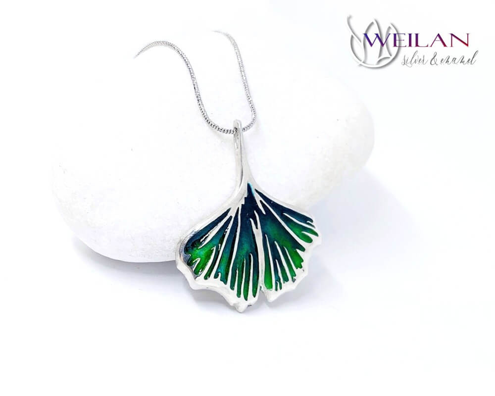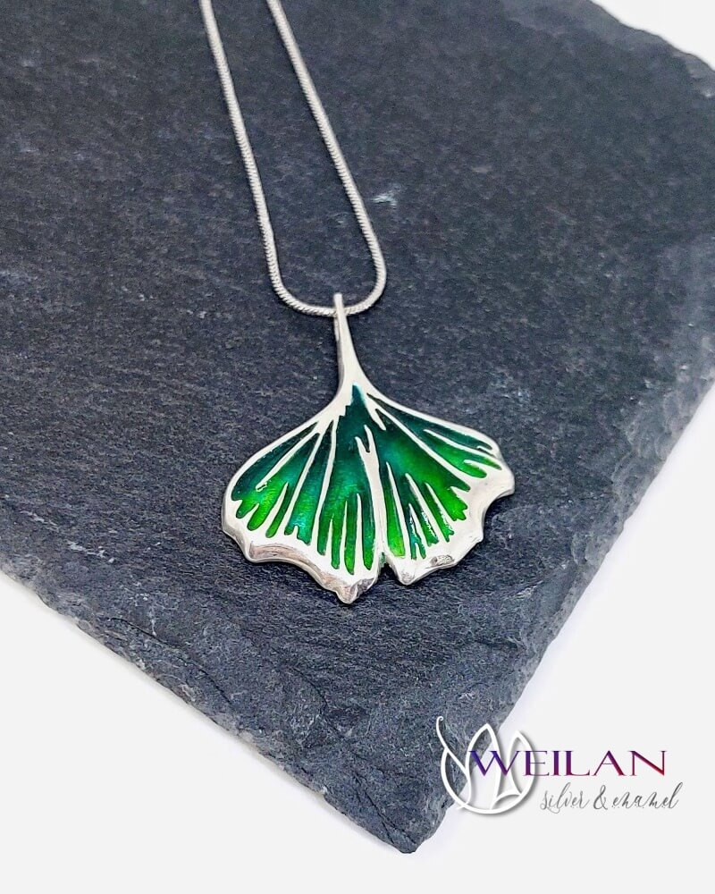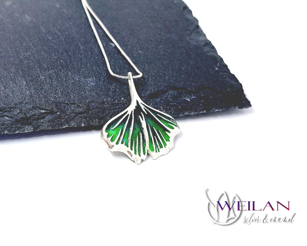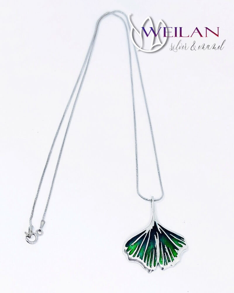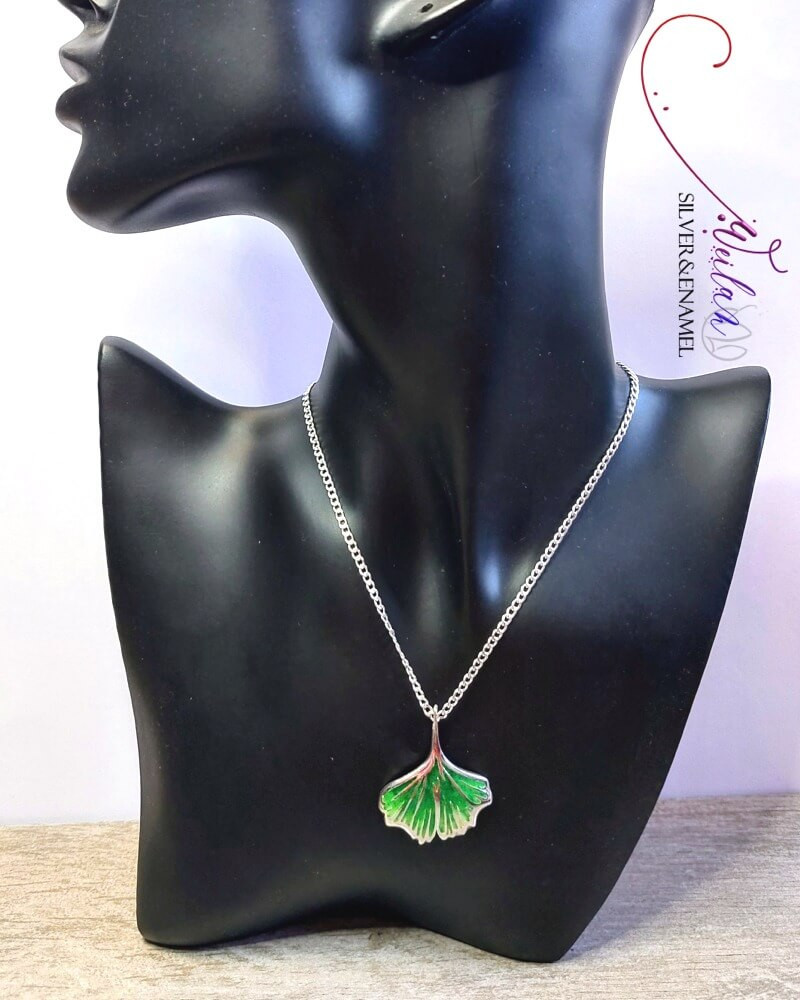 Leaf - Ginkgo Biloba - ezüst tűzzománc medál, ezüst láncon