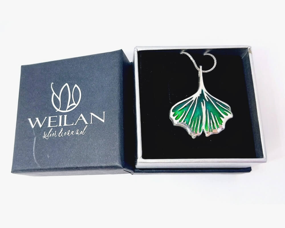 Leaf - Ginkgo Biloba - ezüst tűzzománc medál Weilan díszdobozban