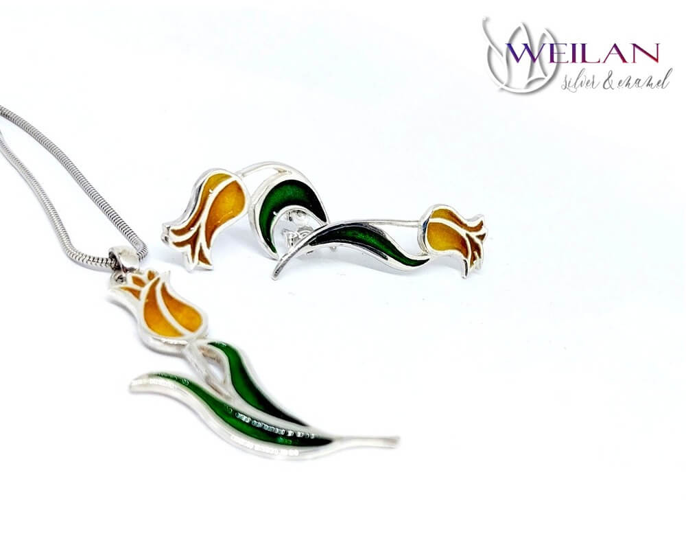 Hej'tulipán - Virágszálam ezüst tűzzománc szett