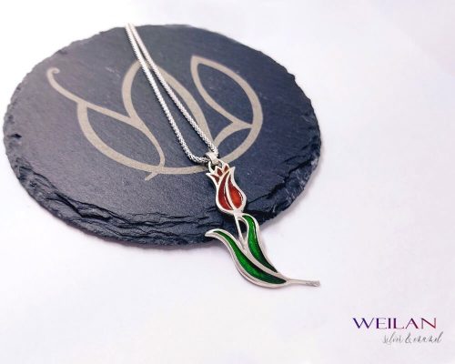 Virágszálam - ezüst tűzzománc medál (piros-zöld)
