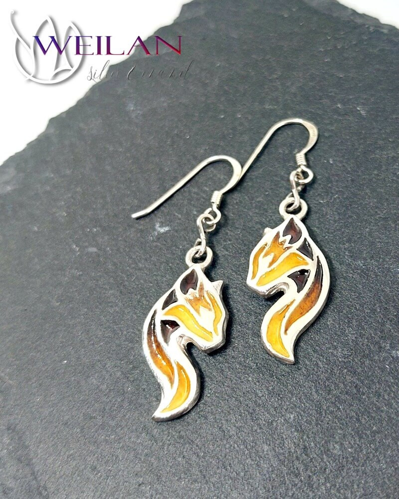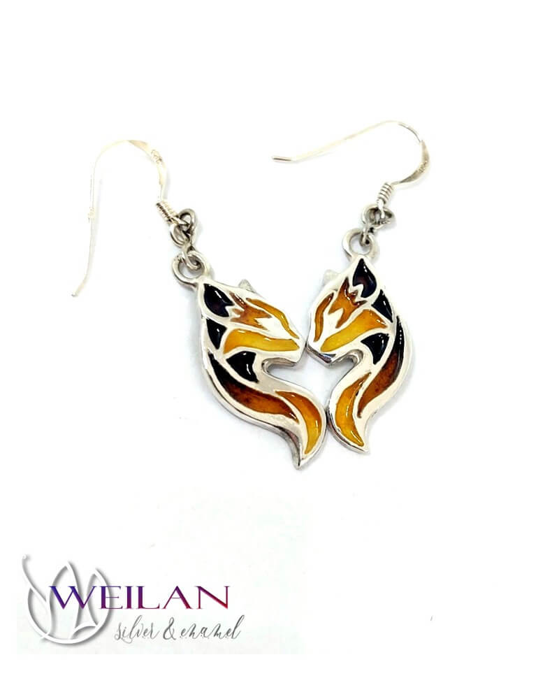 Karminca Tűzmacska - ezüst tűzzománc fülbevaló (barna - narancs - arany)