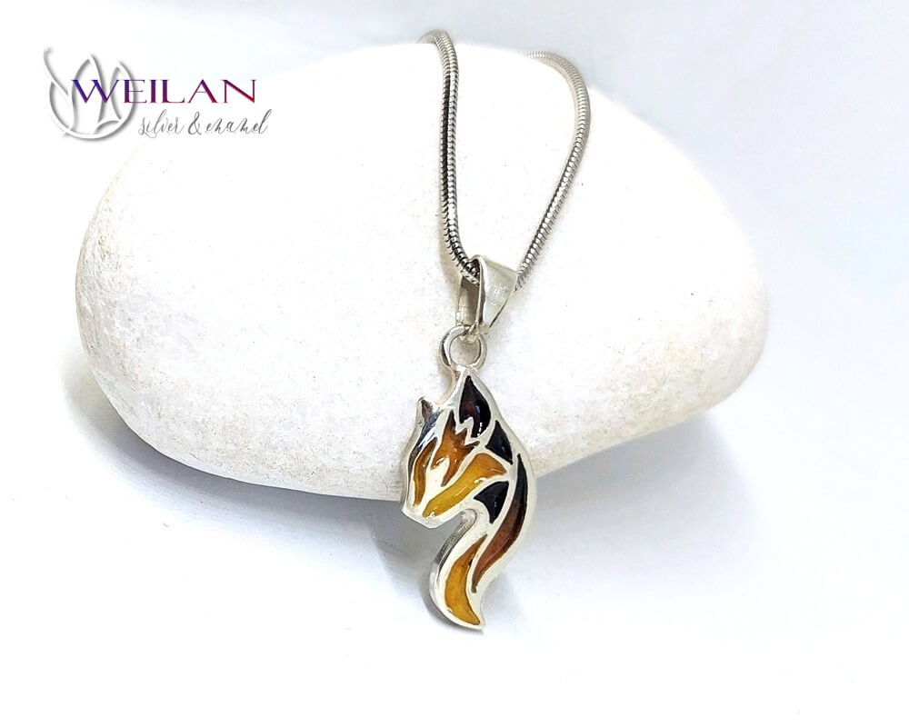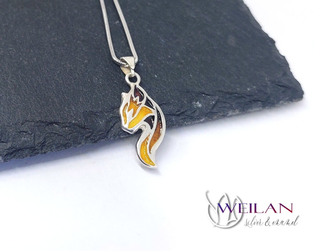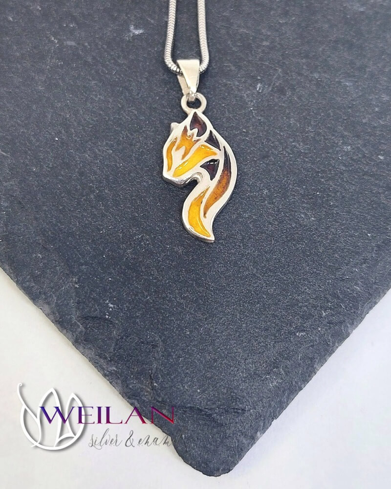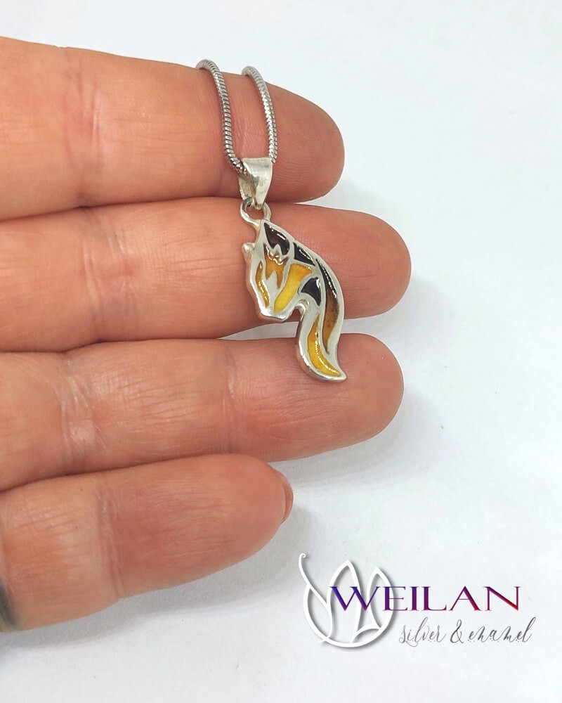 Karminca Tűzmacska - ezüst tűzzománc medál, kis méret (barna - narancs - arany)