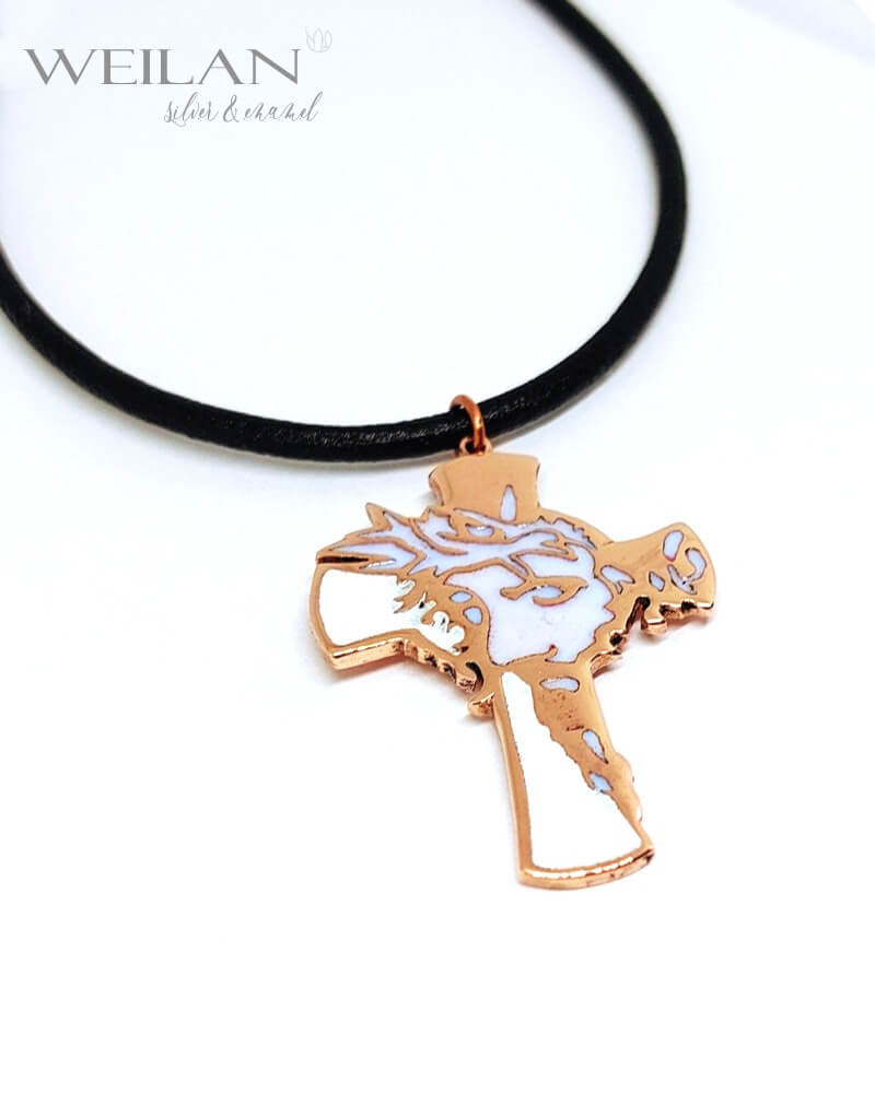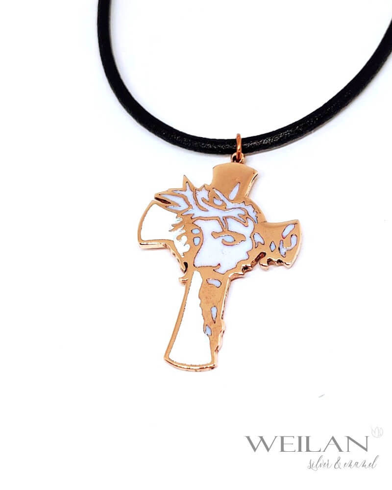 • Ez az egyedi Krisztus Arca kereszt tűzzománc ékszer ezüstből is megtalálható a Weilan ékszerek kínálatában