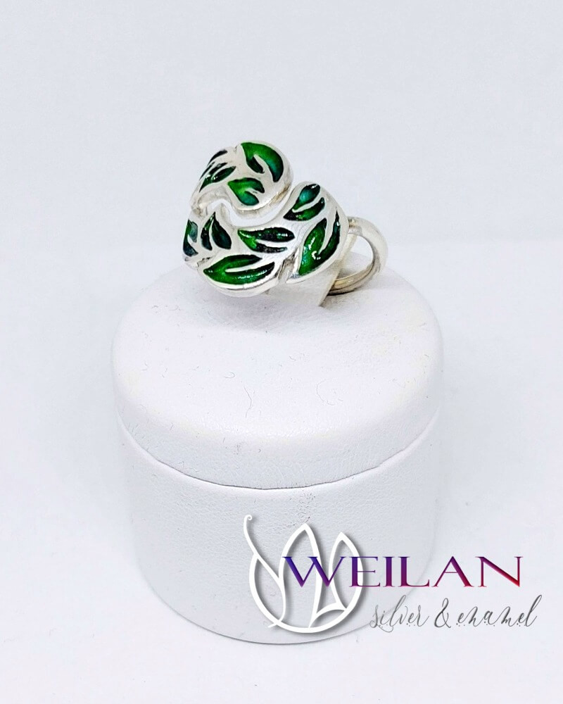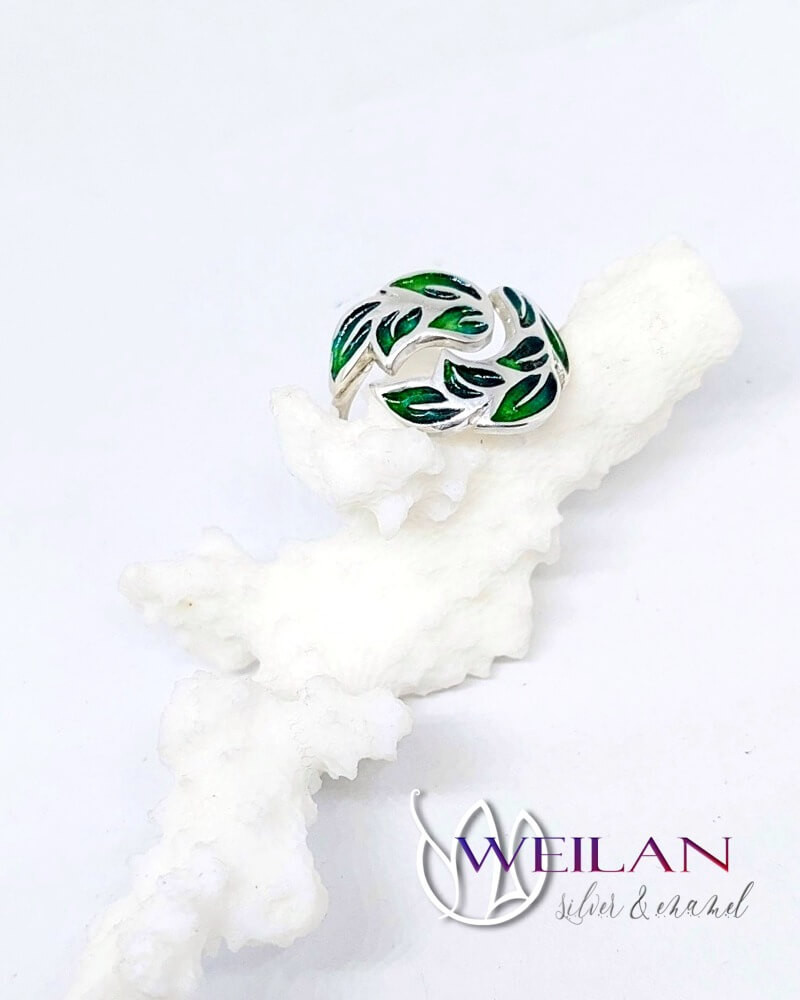 Ezüst alapra készült, tűzzománccal díszített, elegáns babérfüzér motívum ékesíti ezt az egyedi kézműves tűzzománc ékszert, mely a természet szépségét idézi. A finoman megformált babérlevelek nőies megjelenést és időtlen eleganciát kölcsönöznek. A babér – a hiedelmek szerint – erőt, kitartást és sikert hoz viselőjének, így ez az ékszer a kitartás és a győzelem jelképe is.
