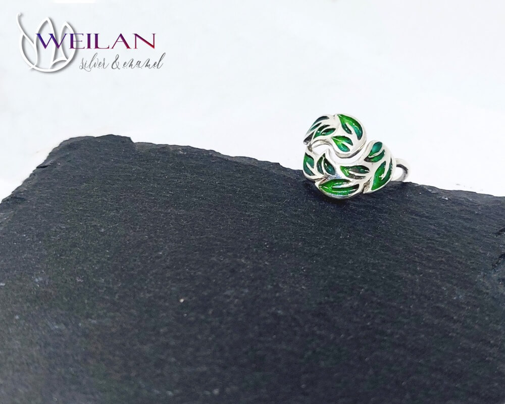 Laurus / Babér - állítható ezüst, tűzzománc gyűrű (választható színben és méretben)