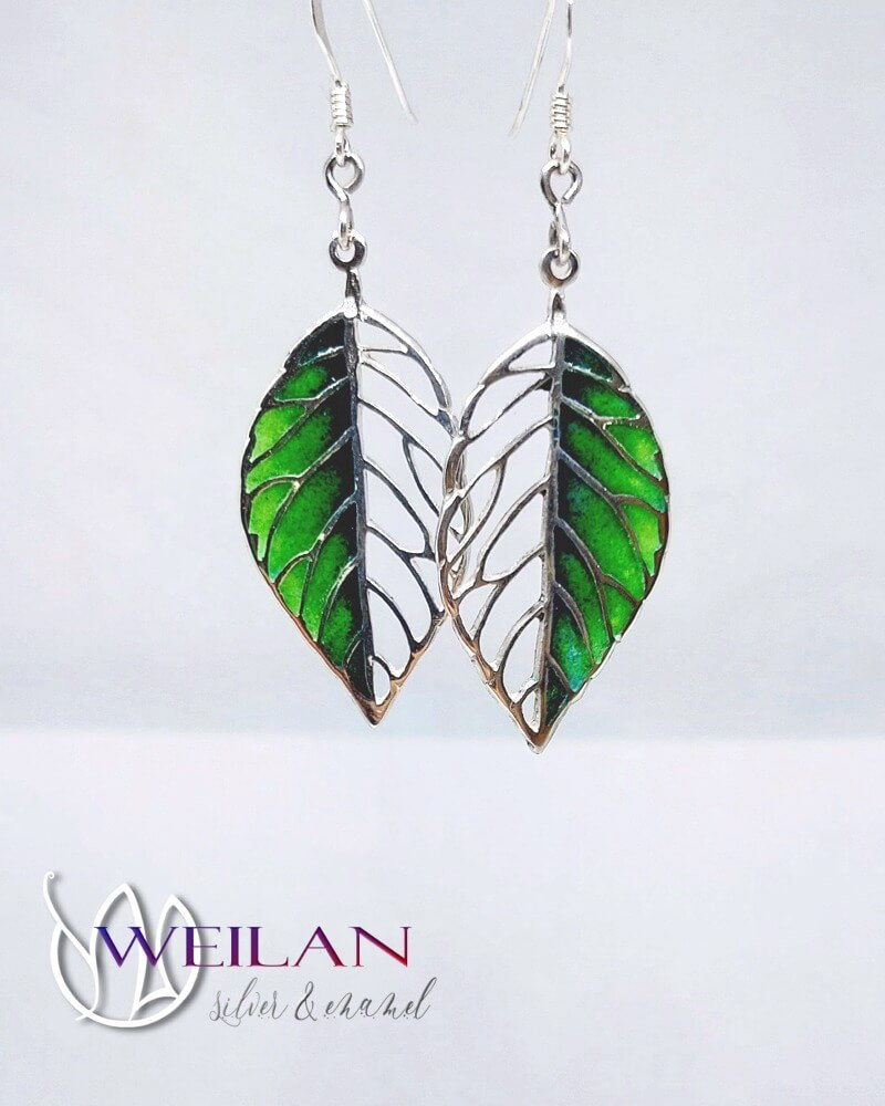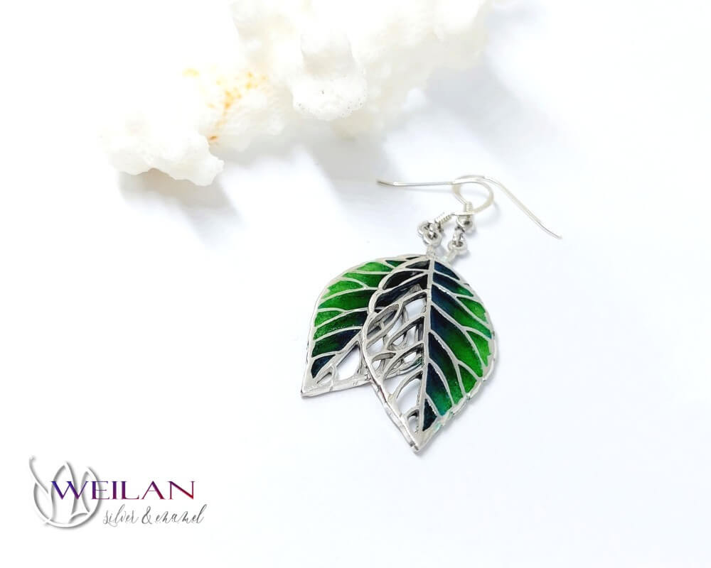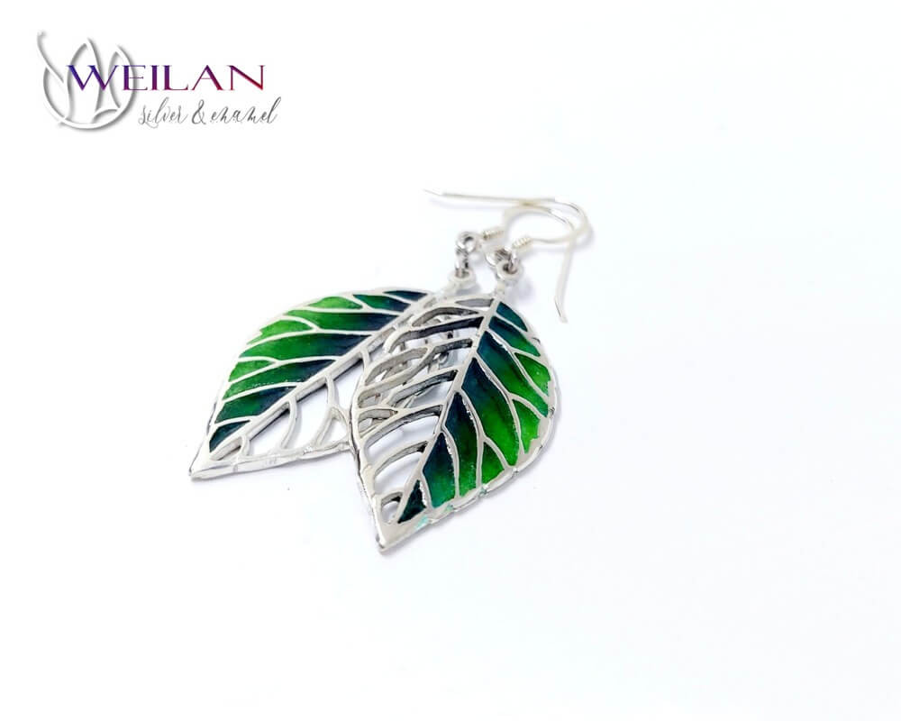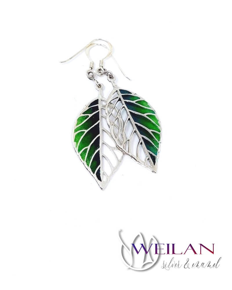 Leaf - Fagus / Bükk ezüst tűzzománc ajour fülbevaló