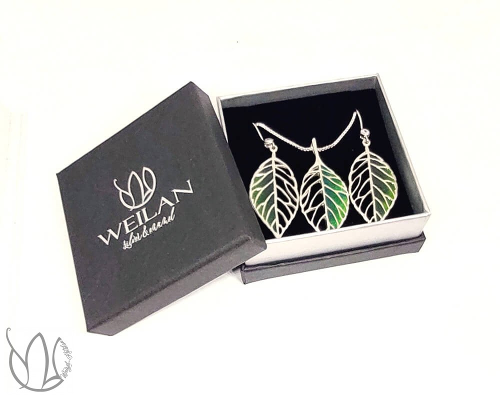 Leaf - Fagus / Bükk ezüst tűzzománc szett Weilan díszdobozban