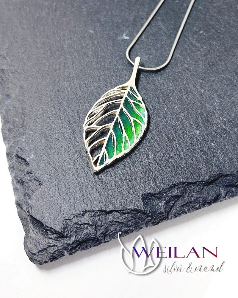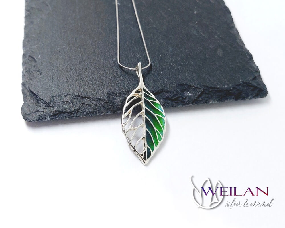 Leaf - Fagus / Bükk ezüst tűzzománc medál, egyedi ékszer