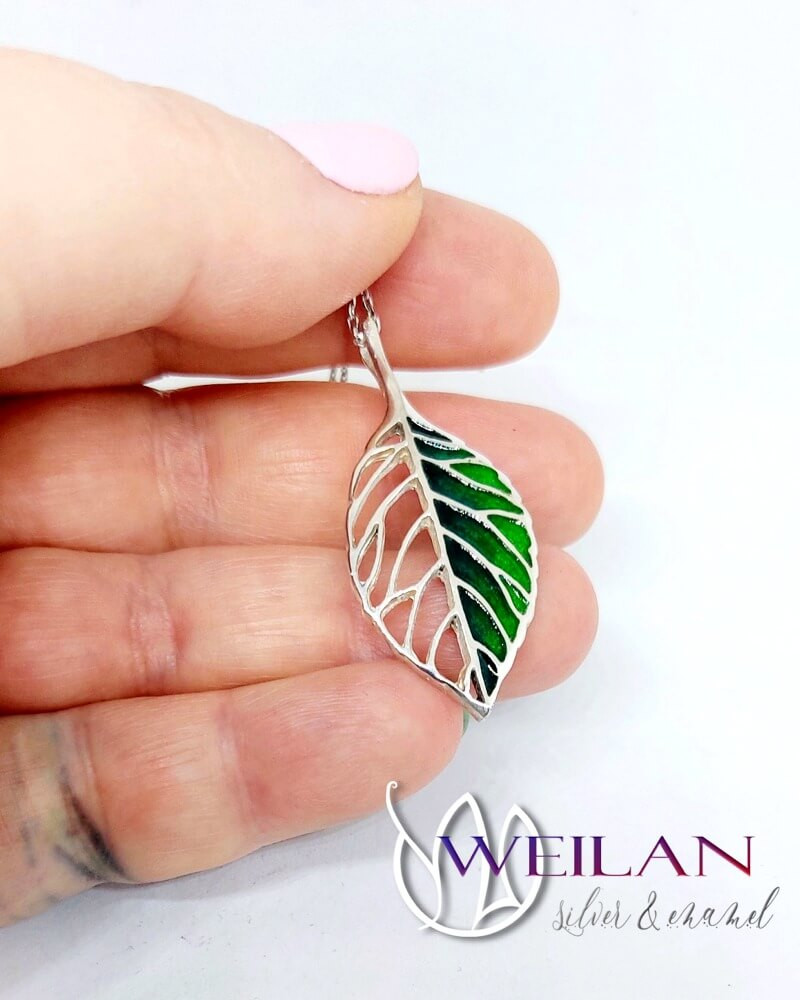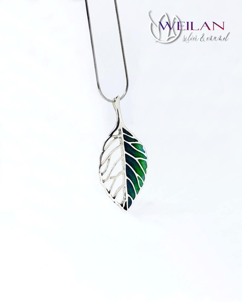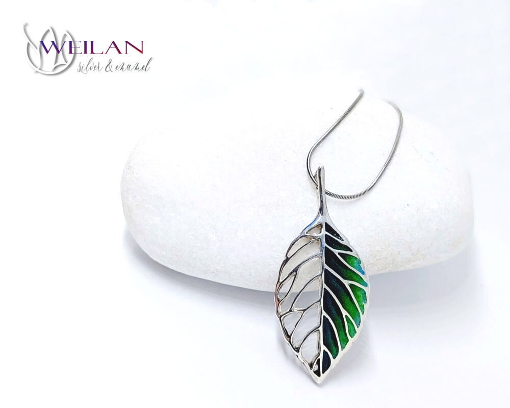 Leaf - Fagus / Bükk ezüst tűzzománc medál, vékony ezüst láncon OG