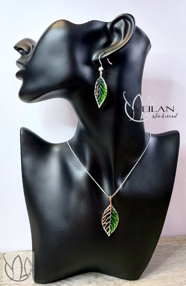 Leaf - Fagus / Bükk ezüst tűzzománc szett Weilan díszdobozban