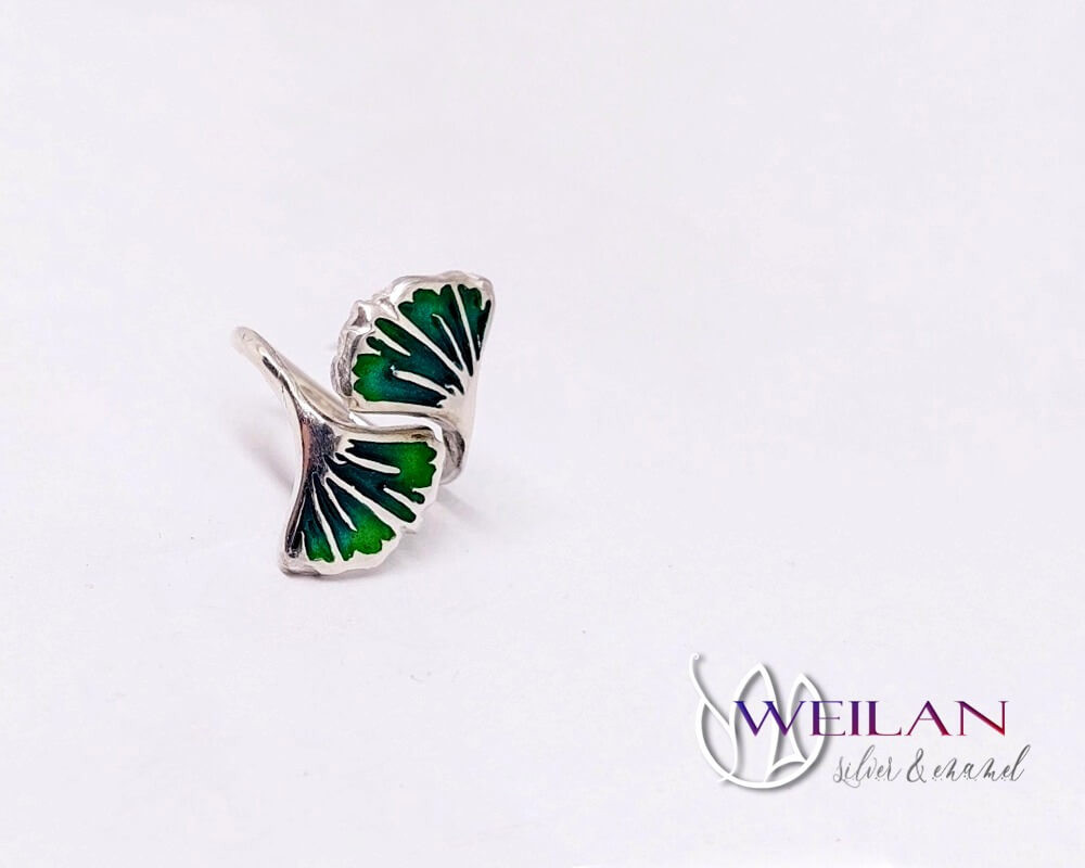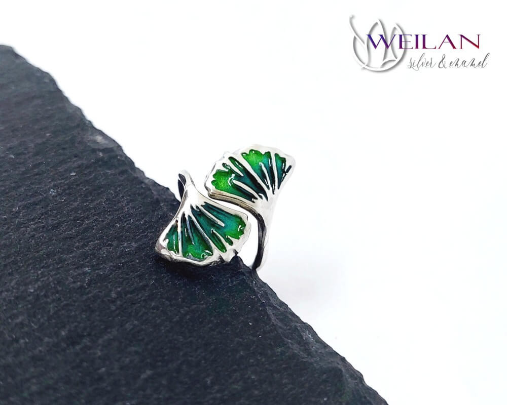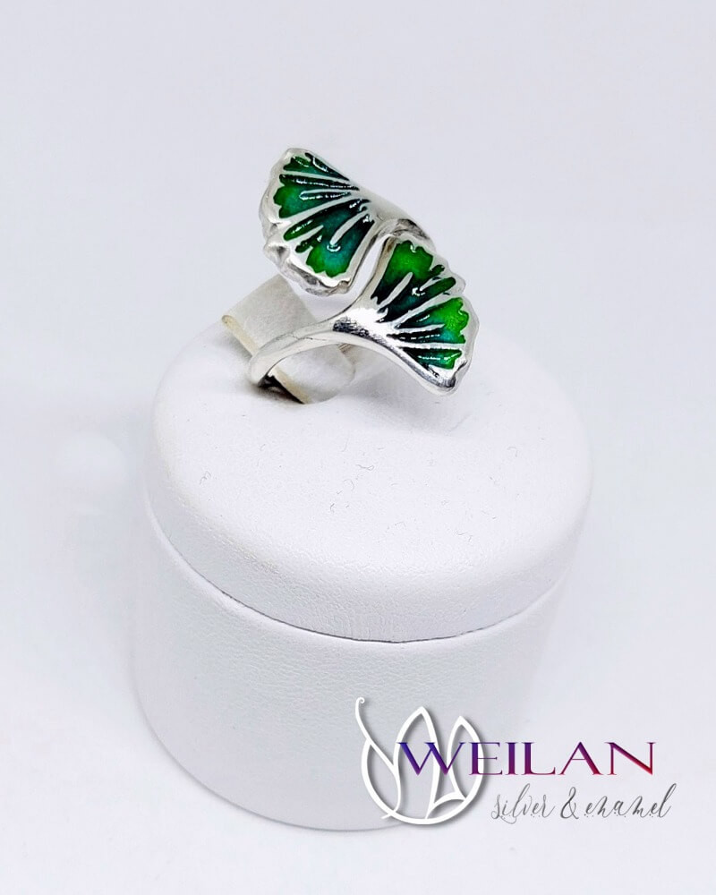 Leaf - Ginkgo Biloba - ezüst tűzzománc gyűrű