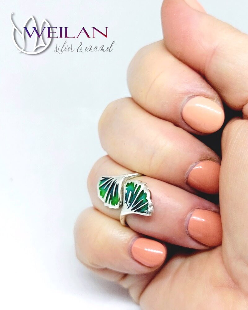 Leaf - Ginkgo Biloba - ezüst tűzzománc gyűrű viselése