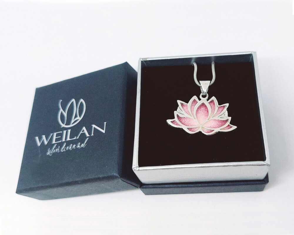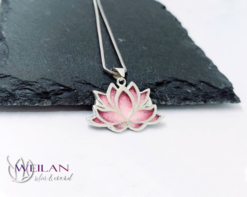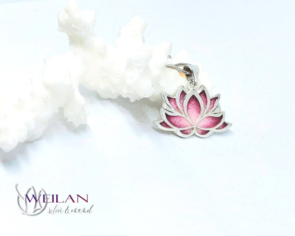 Lótusz ezüst tűzzománc medál Weilan díszdobozban