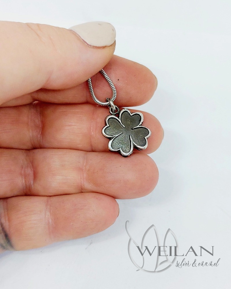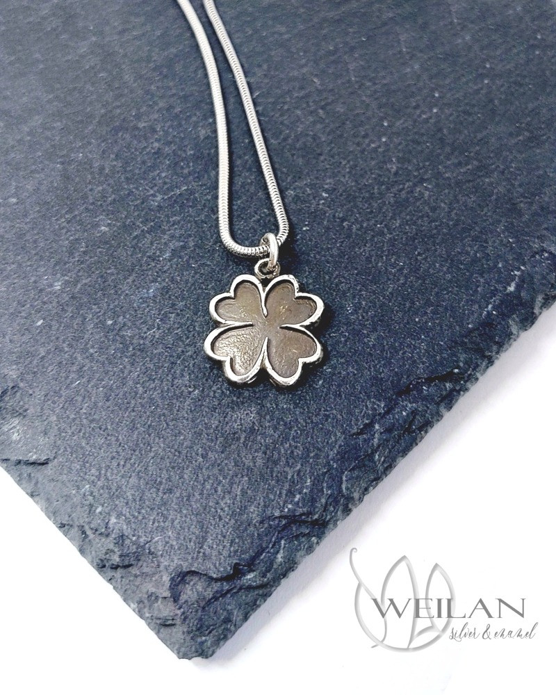 Négylevelű lóhere - antikolt ezüst medál, kis méret