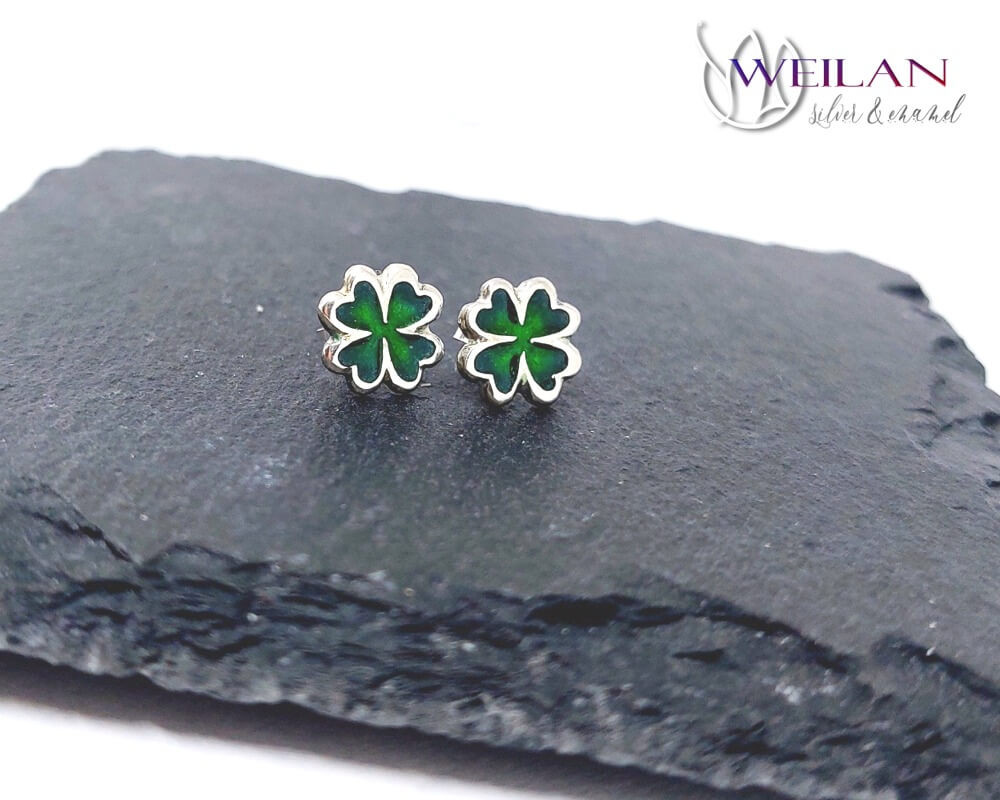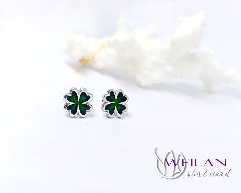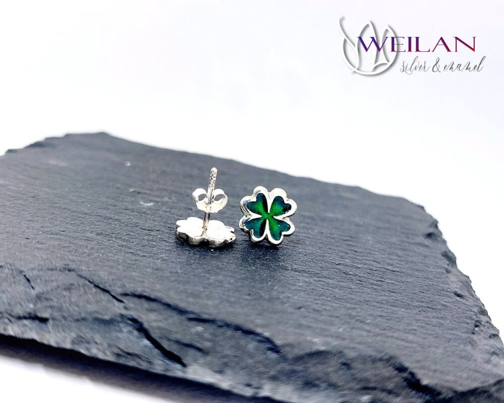 Négylevelű lóhere - ezüst, tűzzománc stiftes fülbevaló