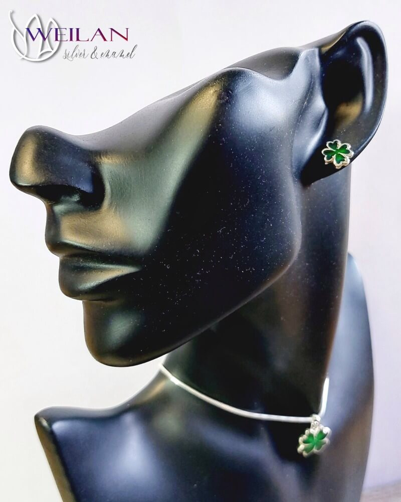Négylevelű lóhere ezüst tűzzománc szett viselése