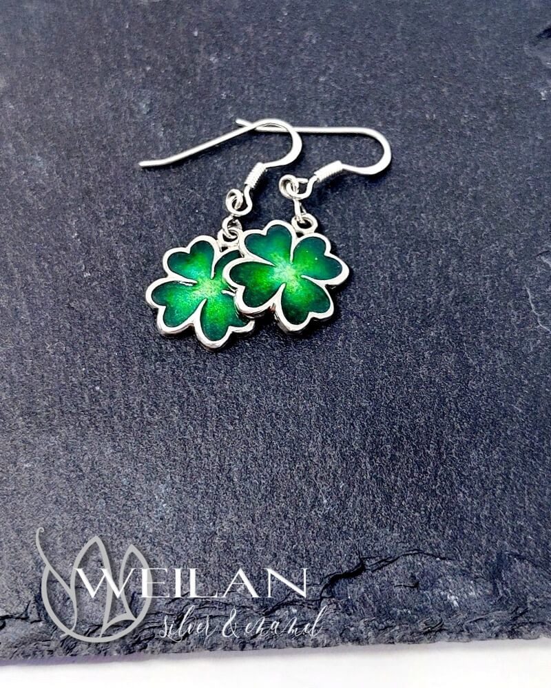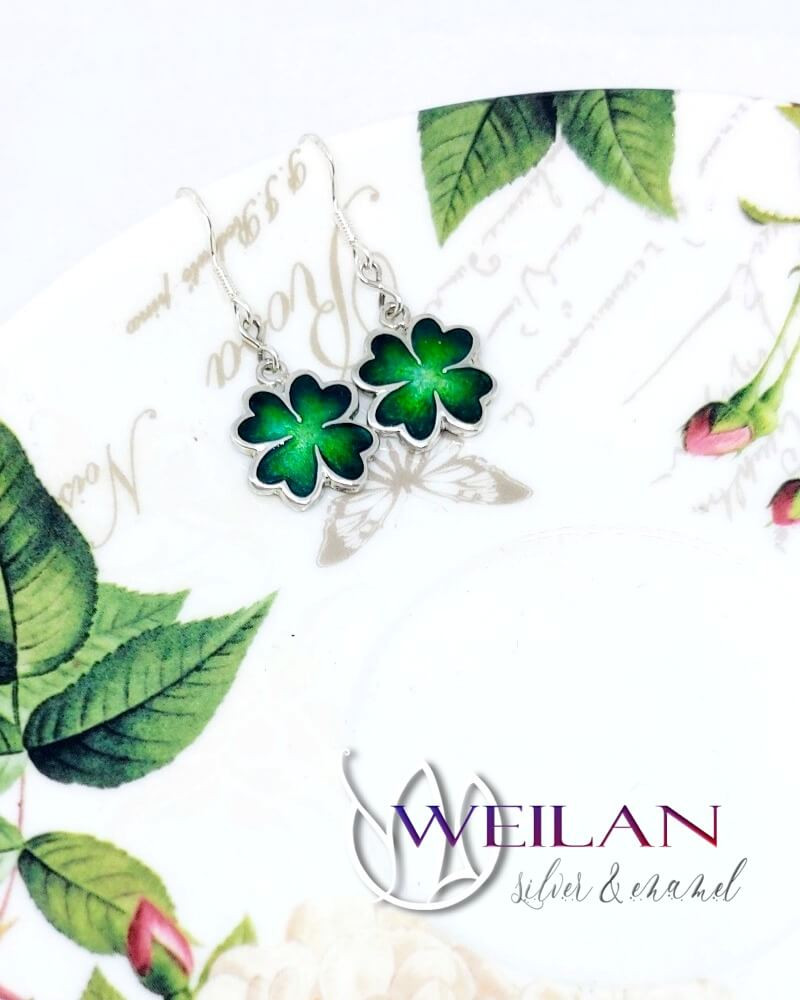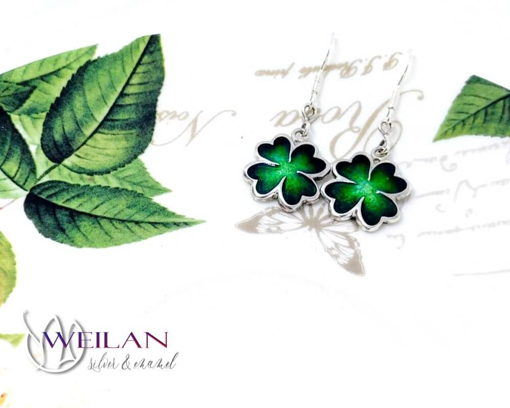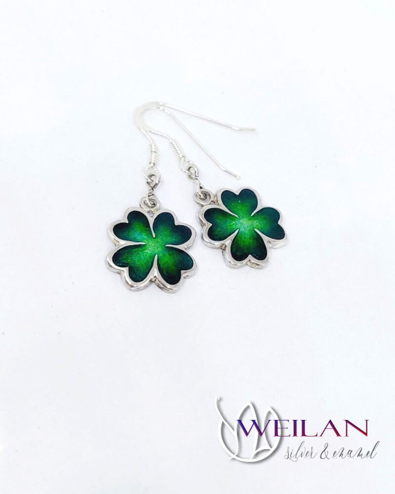 Négylevelű lóhere - ezüst tűzzománc fülbevaló