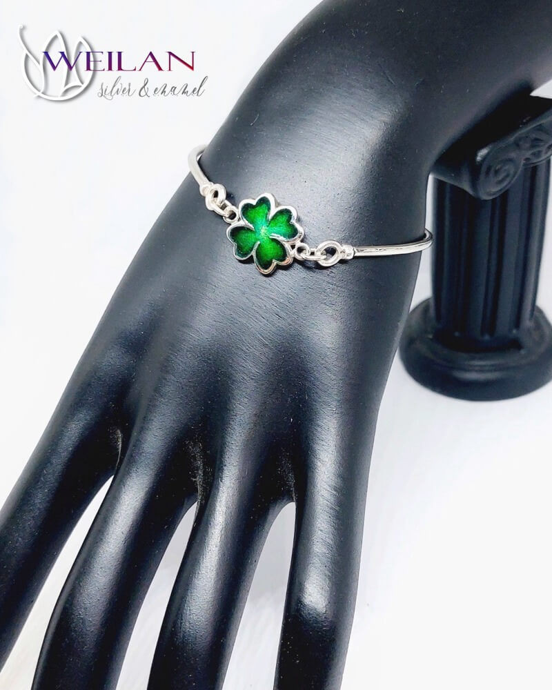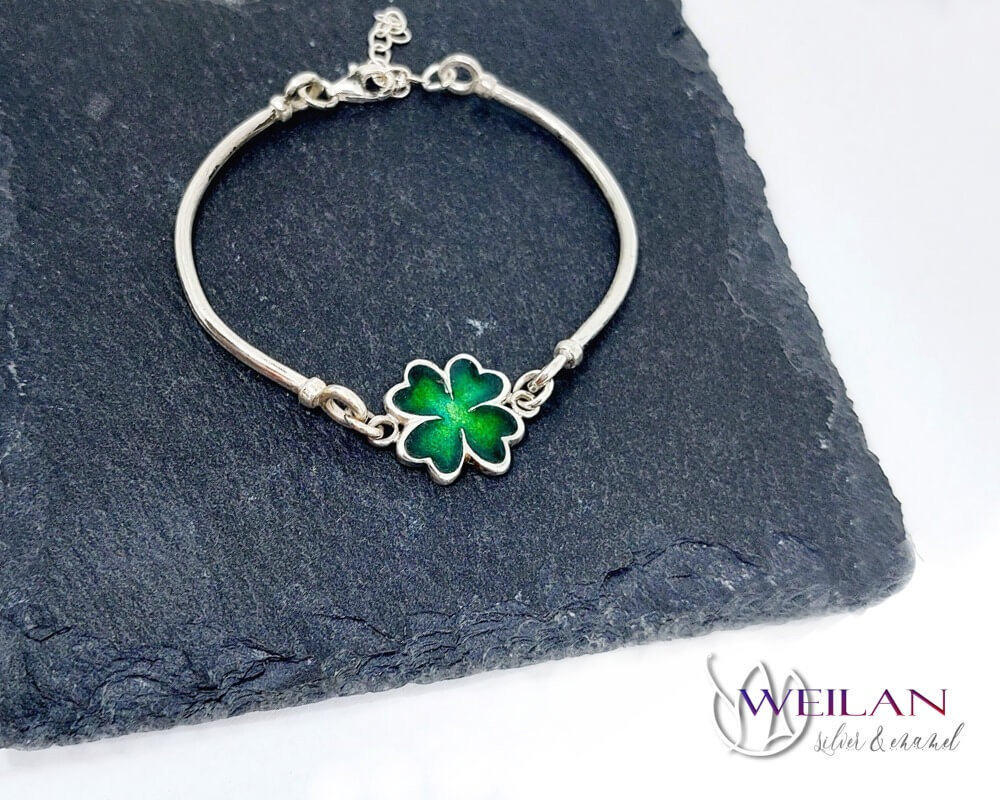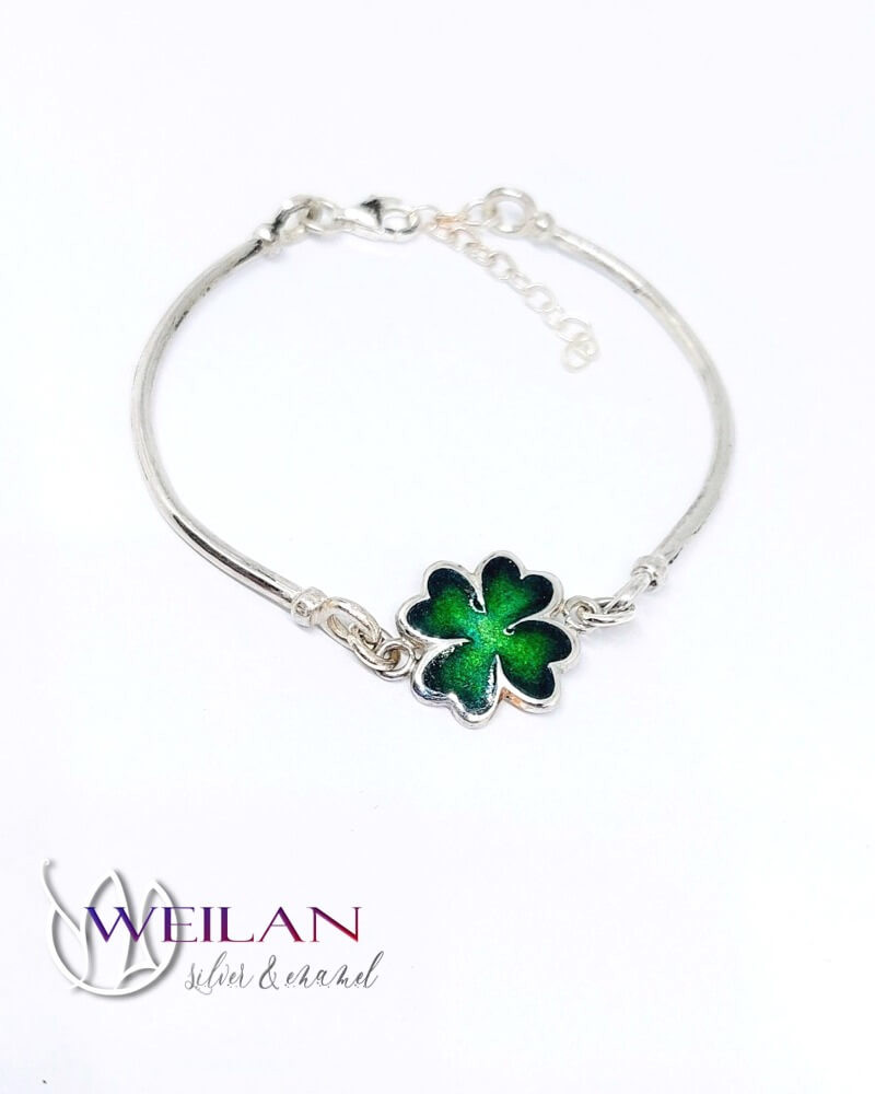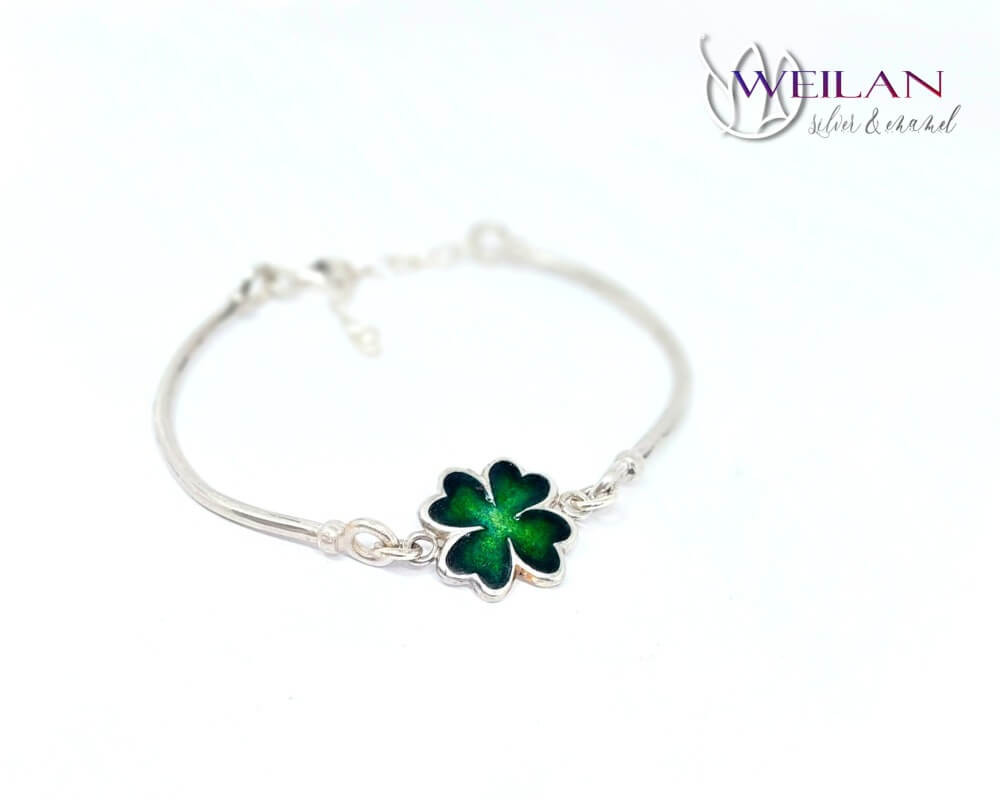 Négylevelű lóhere - ezüst tűzzománc karkötő