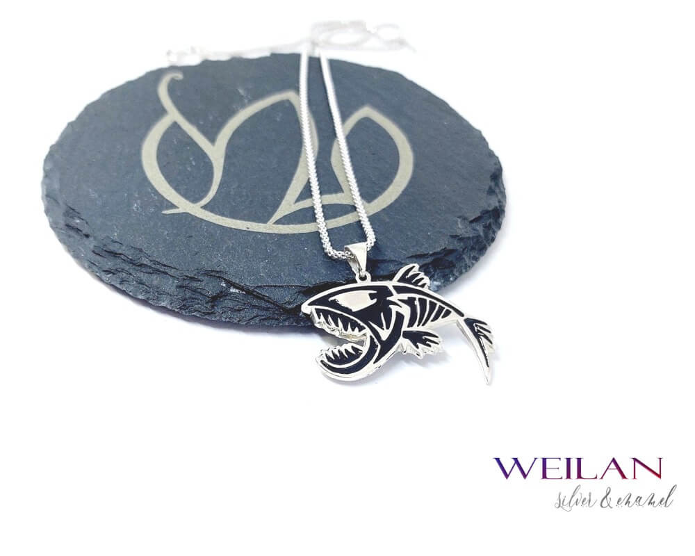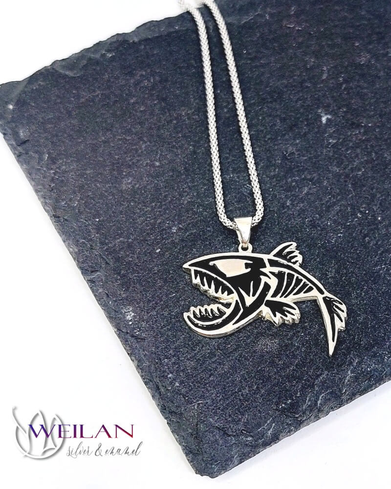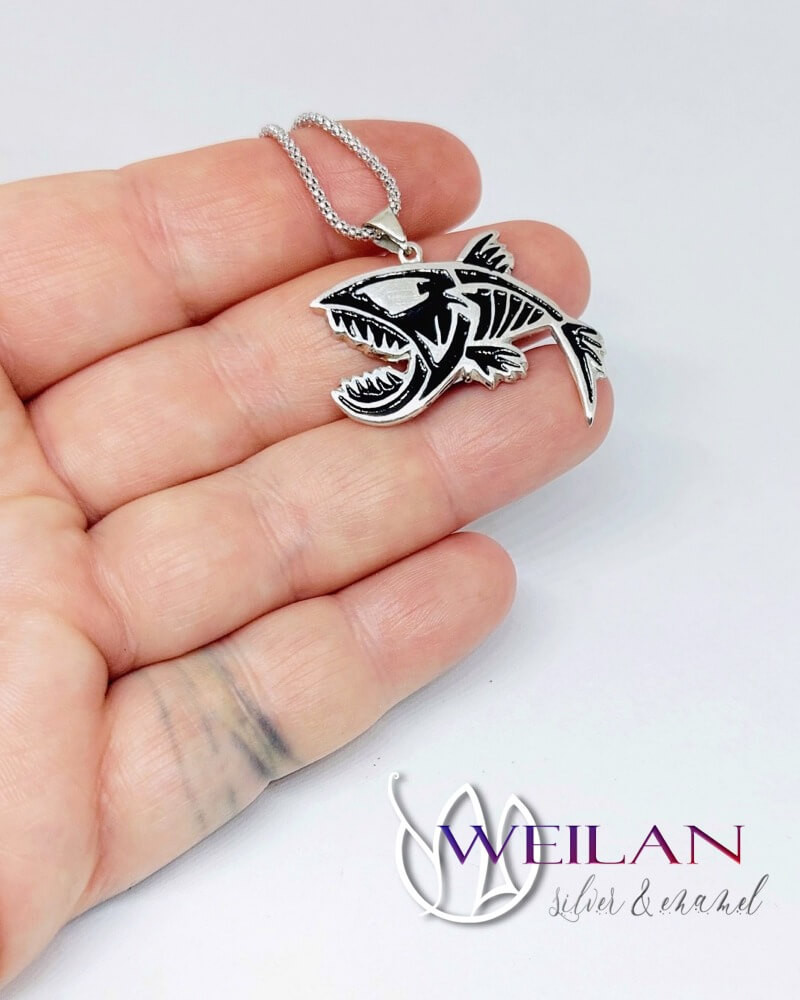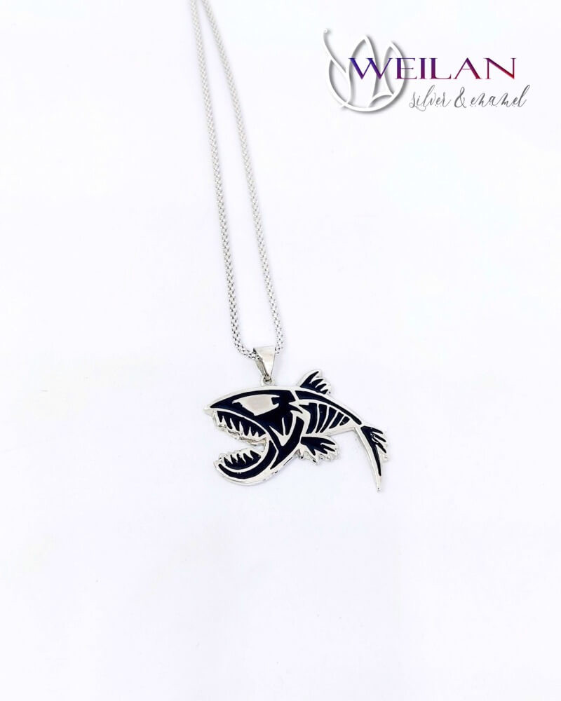 Piri a piranha - ezüst tűzzománc medál (fekete)