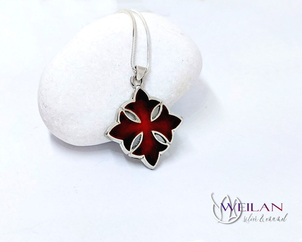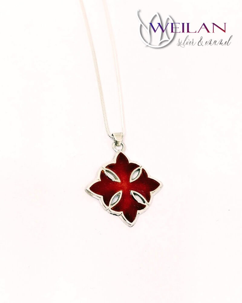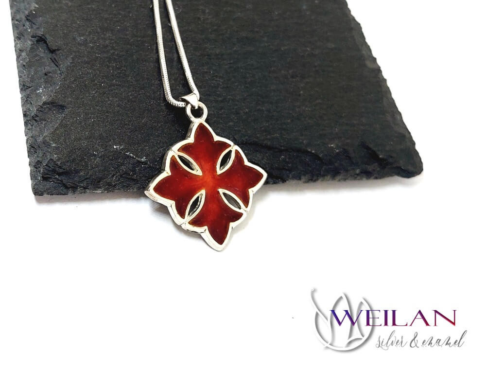 Ez a klasszikus Görög kereszt medál ezüst alapra készült, sötétpiros és piros zománcozással.