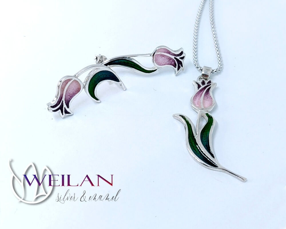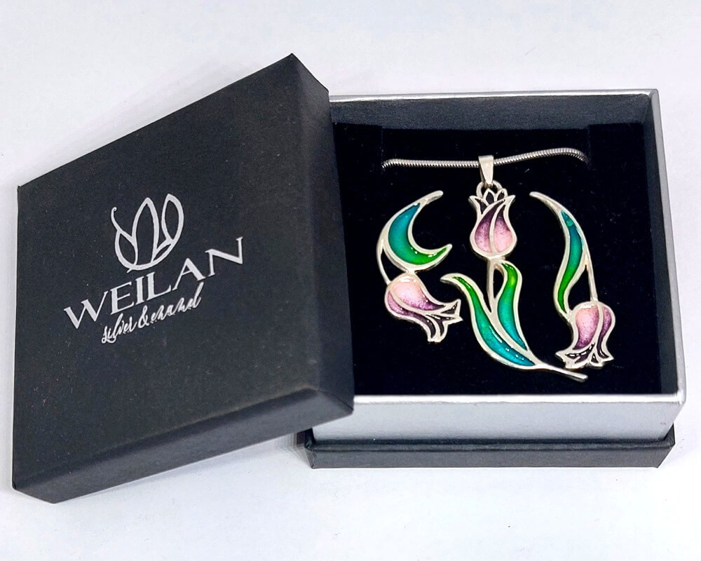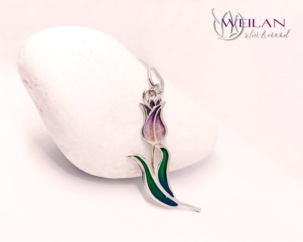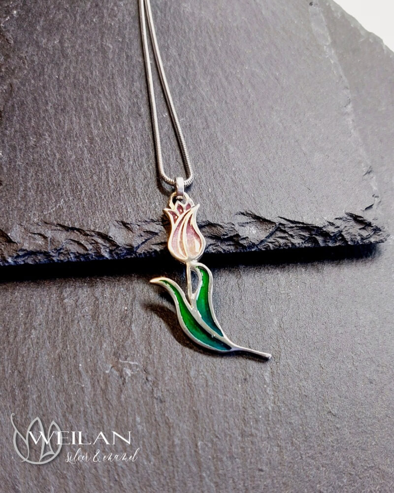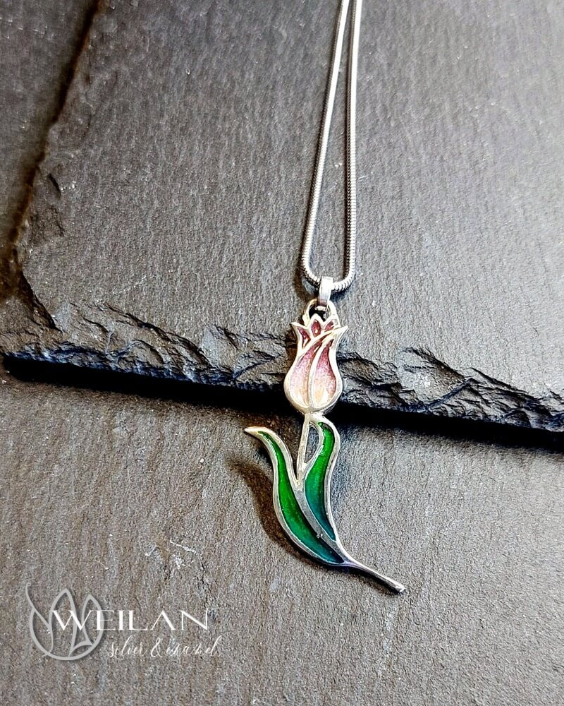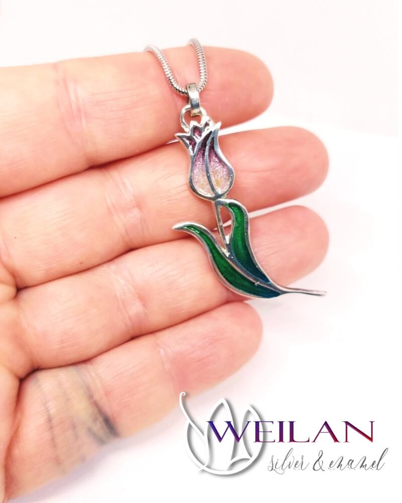 Hej'tulipán - Virágszálam ezüst tűzzománc medál Weilan díszdobozban